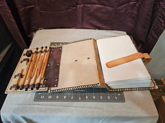 This book was made with a fold out panel holding all the art supplies. This means even if your halfway through the book you can still access all them without having to flip back to the front page.
